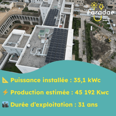 Faradae finance votre énergie propre grâce à des installations photovoltaïques et des équipements associés (batteries, réseaux internes, outils de GTB, IRVE), permettant de maximiser l’autonomie énergétique des bâtiments en autoconsommation.
